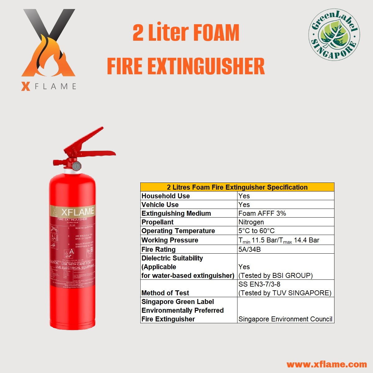 XFLAME 2L Foam Fire Extinguisher